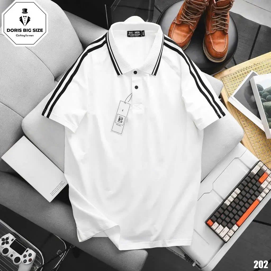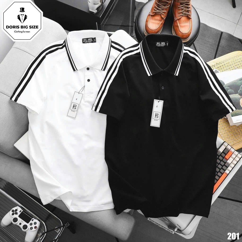 ÁO THUN CỔ BẺ (POLO) CỔ GÂN PHỐI 2 SỌC THỜI TRANG BIG SIZE 85 – 135KG