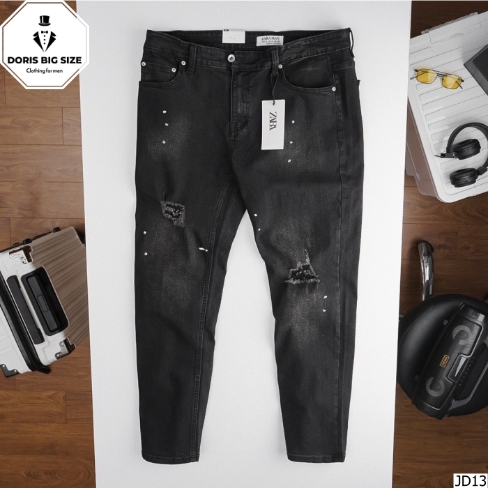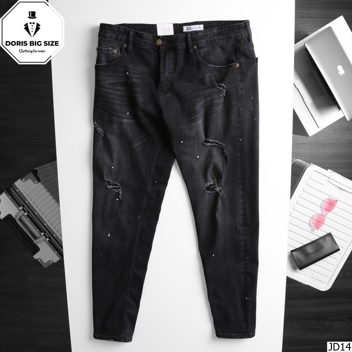 Quần Jean Dài Đen Chấm Sơn Rách Kiểu (80kg-130kg)